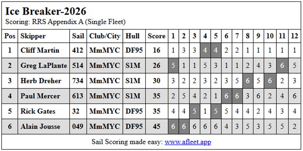 The Next Racing Will Be April 12, 2026. There will be open sailing starting at 10:00am. DF95’s and Soling One Meters will begin racing at 12 Noon. Mark your calendars and we will see you there!